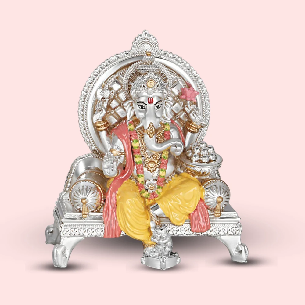 1.Lord Ganesha Sitting On Singhasan-Silver Plated Idol 2.Gift type:Divine Idol 3. The image displayed is representative. 4.Normal Delivery takes upto 5-7 Business Days to get Delivered