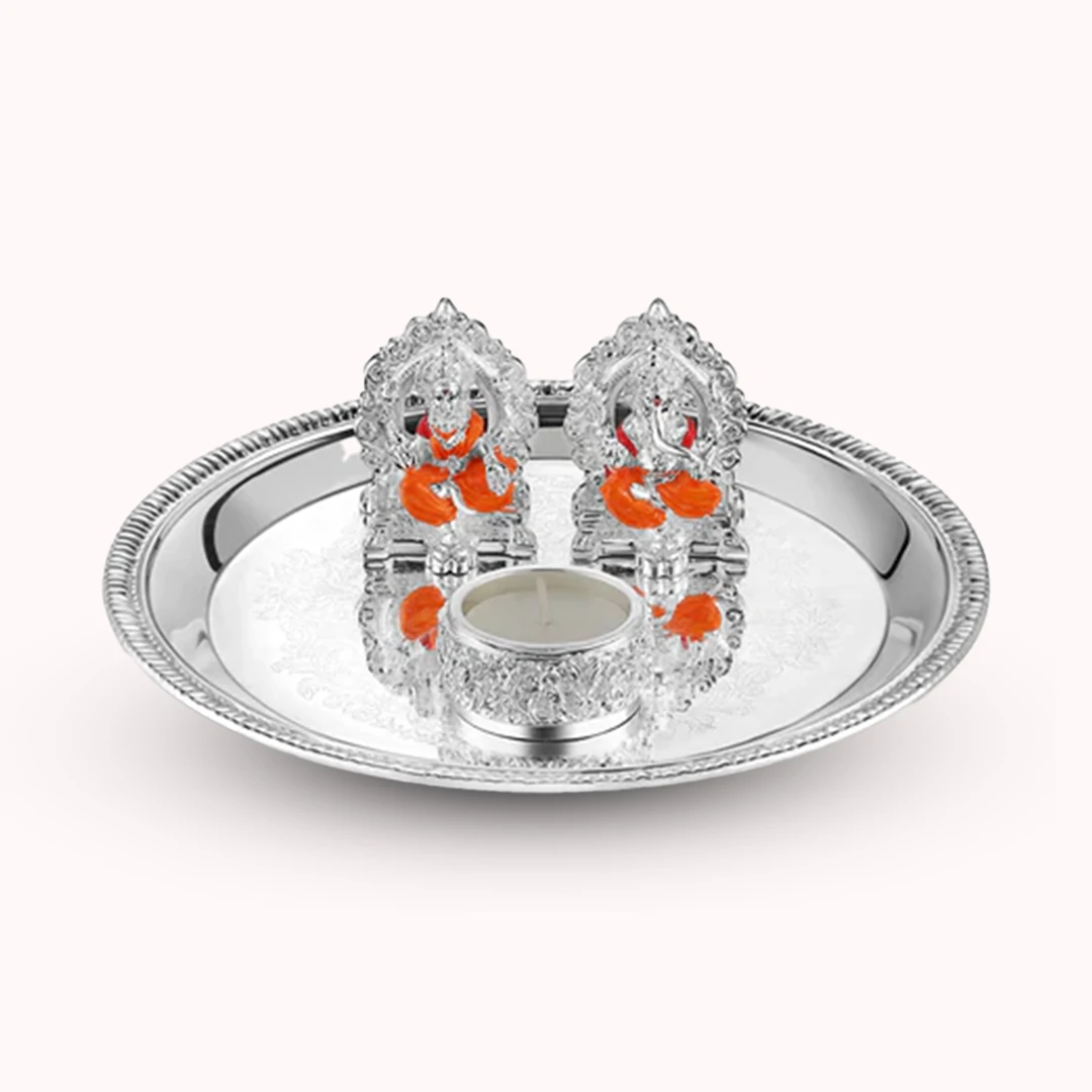 1Small Laxmi Ganes With Puja Thali With Tea Light 2.Gift type: Home Decor 3. The image displayed is representative. 4.Normal Delivery takes upto 5-7 Business Days to get Delivered